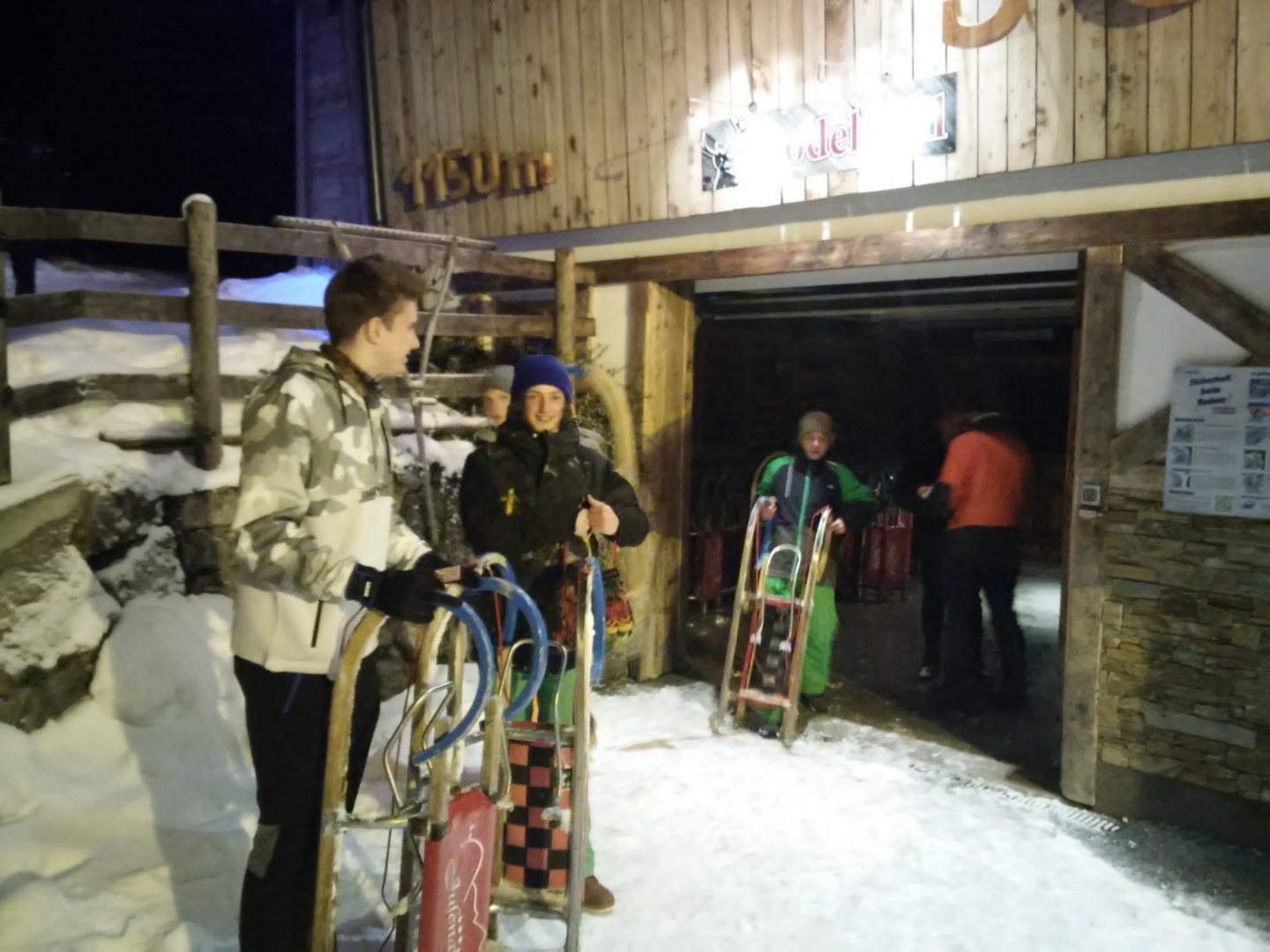 Der erneute Wintereinbruch wurde von der Internatsfamilie Humer - Klappert für eine Rodelpartie genützt.