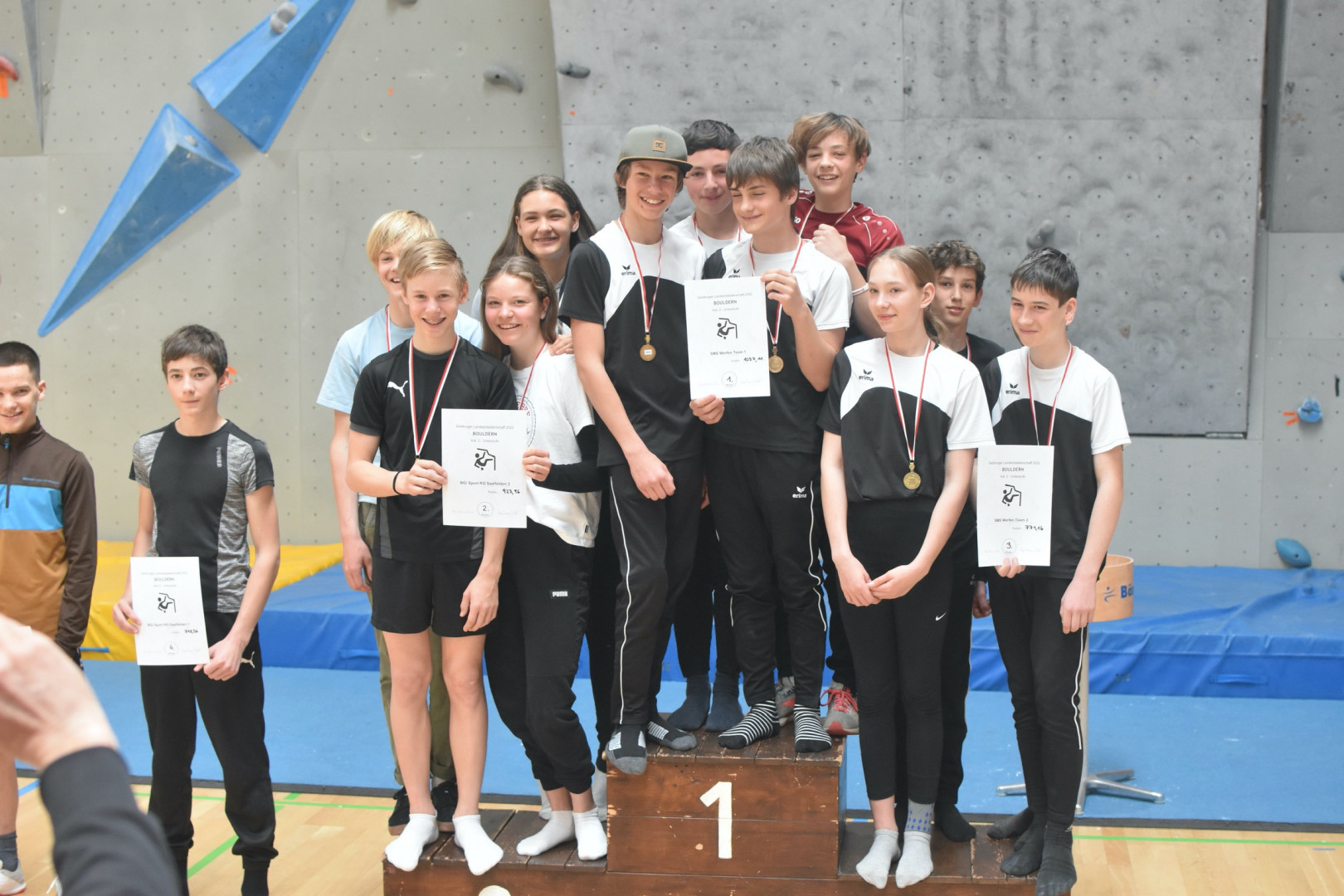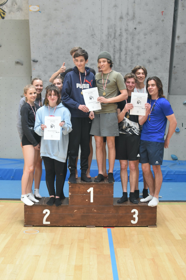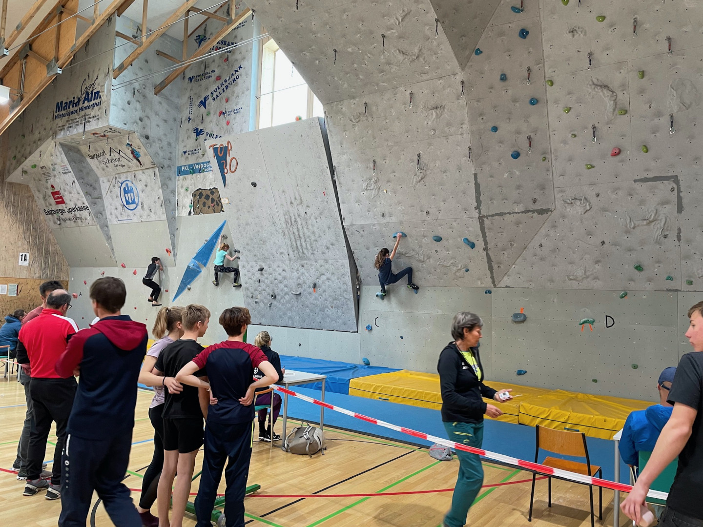 Nach mehrjähriger Pause konnte heuer die Landesmeisterschaft im Speedbouldern an der HIB Saalfelden ausgetragen werden. 16 Teams versuchten in vier Durchgängen die Boulderprobleme zu lösen und sie in der vorgegebenen Zeit so oft wie möglich zu wiederholen. In der Kategorie 1 u. 2 gewannen Teams der SMS Werfen und in der Kategorie 3 waren Schüler der HTL Kuchl nicht zu schlagen. Teams der HIB Saalfelden belegten in allen drei Kategorien den souveränen zweiten Platz. Die dritten Plätze gingen nach Altenmarkt (Kat.1) Werfen (Kat.2) und Kuchl (Kat.3).