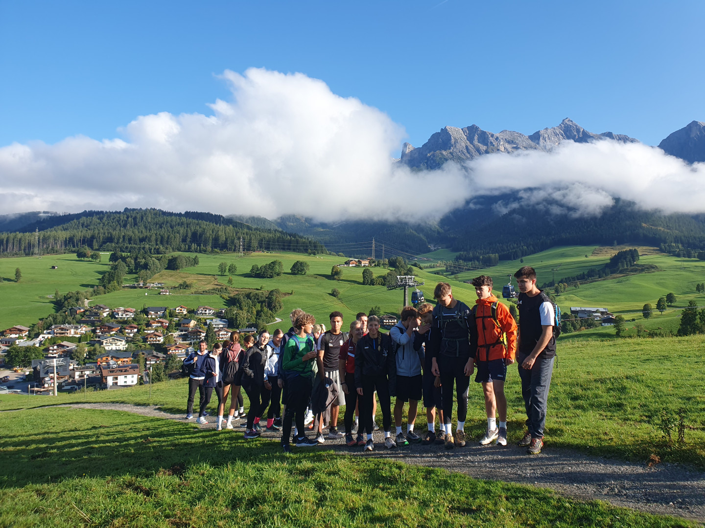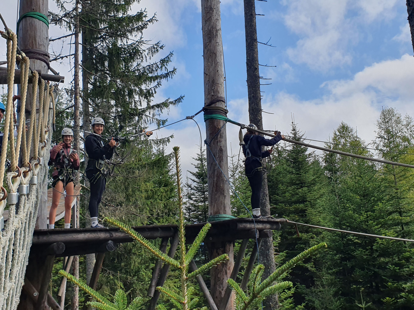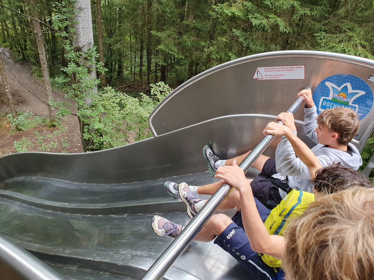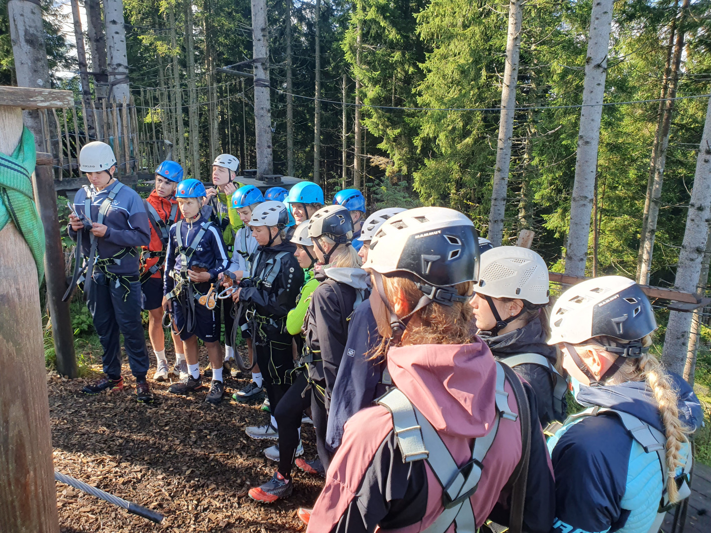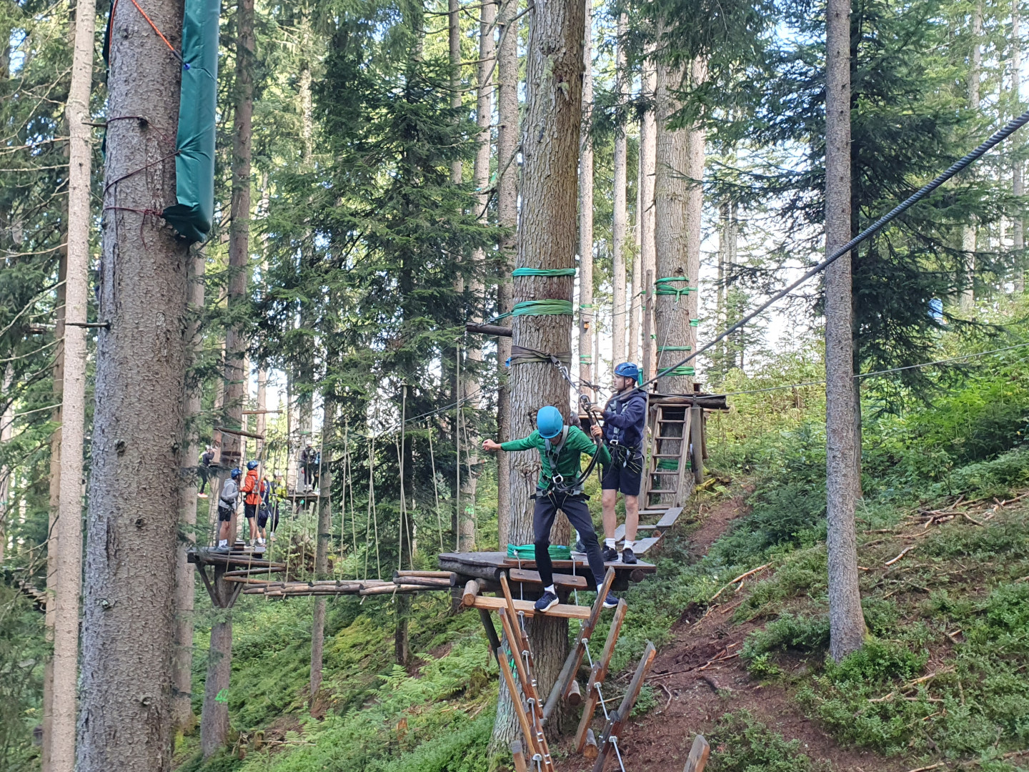"Am 12. September 2025 machten wir, die Klasse 6s1, einen interessanten Ausflug zum Waldseilgarten in Maria Alm. Bereits um 8:10 Uhr starteten wir mit dem Bus nach Maria Alm. Als wir mit dem Bus ankamen, mussten wir ungefähr eine Stunde rauf zum Seilgarten wandern. Nachdem wir oben angekommen waren, machten wir eine kleine Pause und danach gab es für uns eine Einschulung für den Seilgarten. Wir gingen in den Klettergarten und begannen unser Abenteuer in den Bäumen. Es gab verschiedenen Gruppen, die zusammen in den Wald herum kletterten. Die verschiedenen Routen machten einen spaßigen und spannenden Tag. Zum Abschluss rutschen wir den halben Weg und wanderten den Rest runter zurück nach Maria Alm."