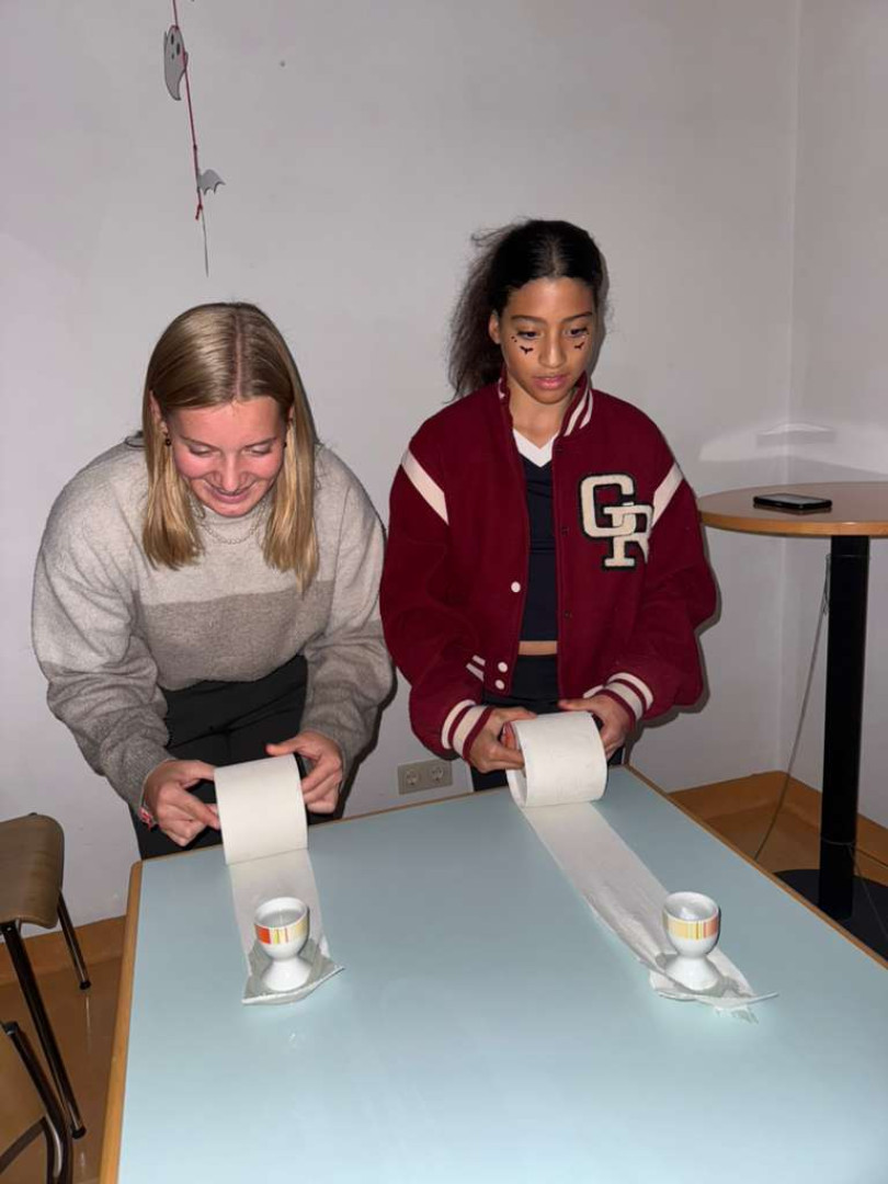 Am vergangenen Donnerstag verwandelte sich das Internat in ein echtes Gruselschloss! Frau Prof. Hickel und Frau Prof. Wimmer organisierten einen schaurig-coolen Abend mit lustigen Spielen, kreativer Schminke und passender Deko. Die Schüler:innen brachten selbstgemachte Naschereien und jede Menge gute Laune mit.