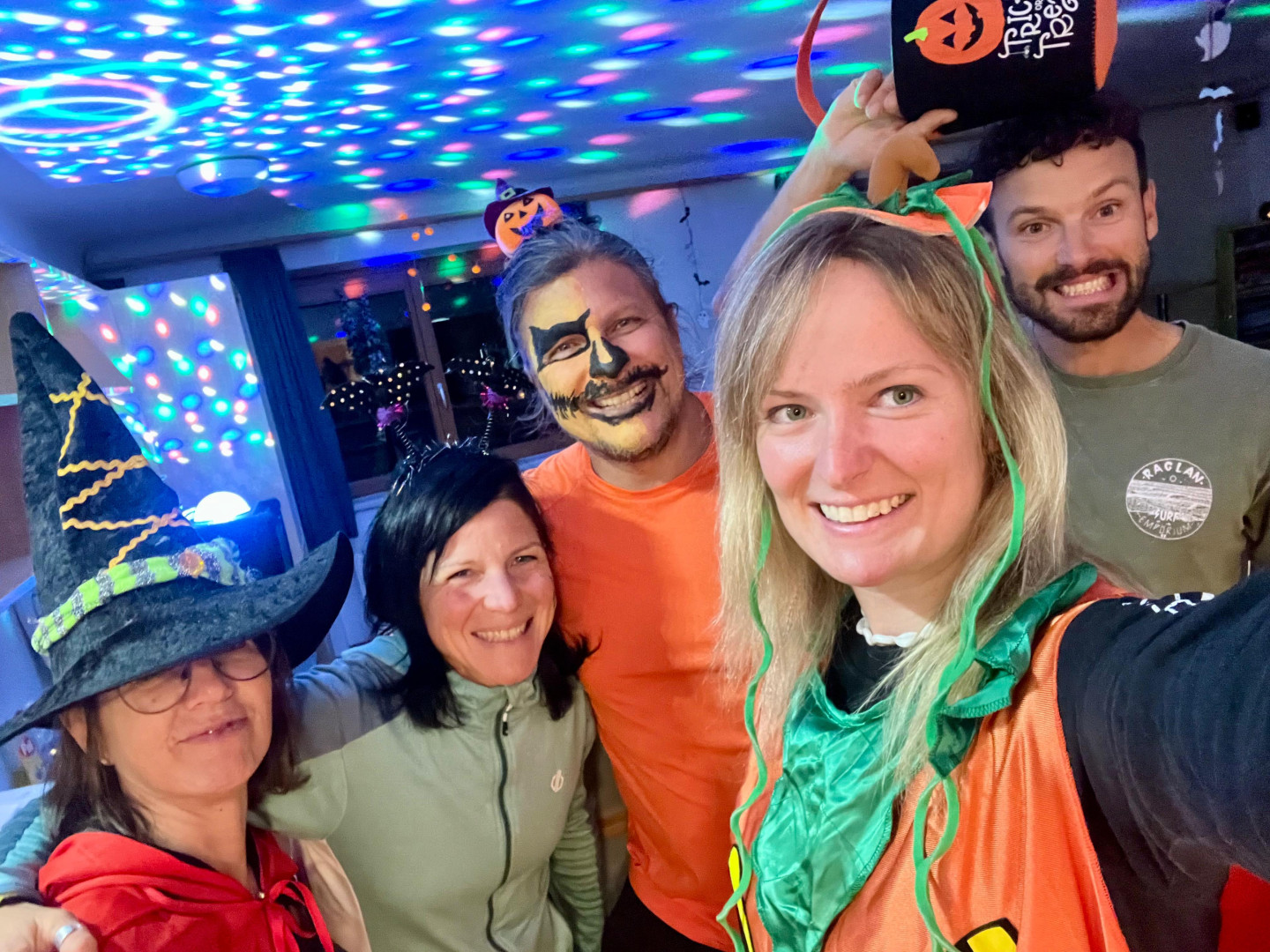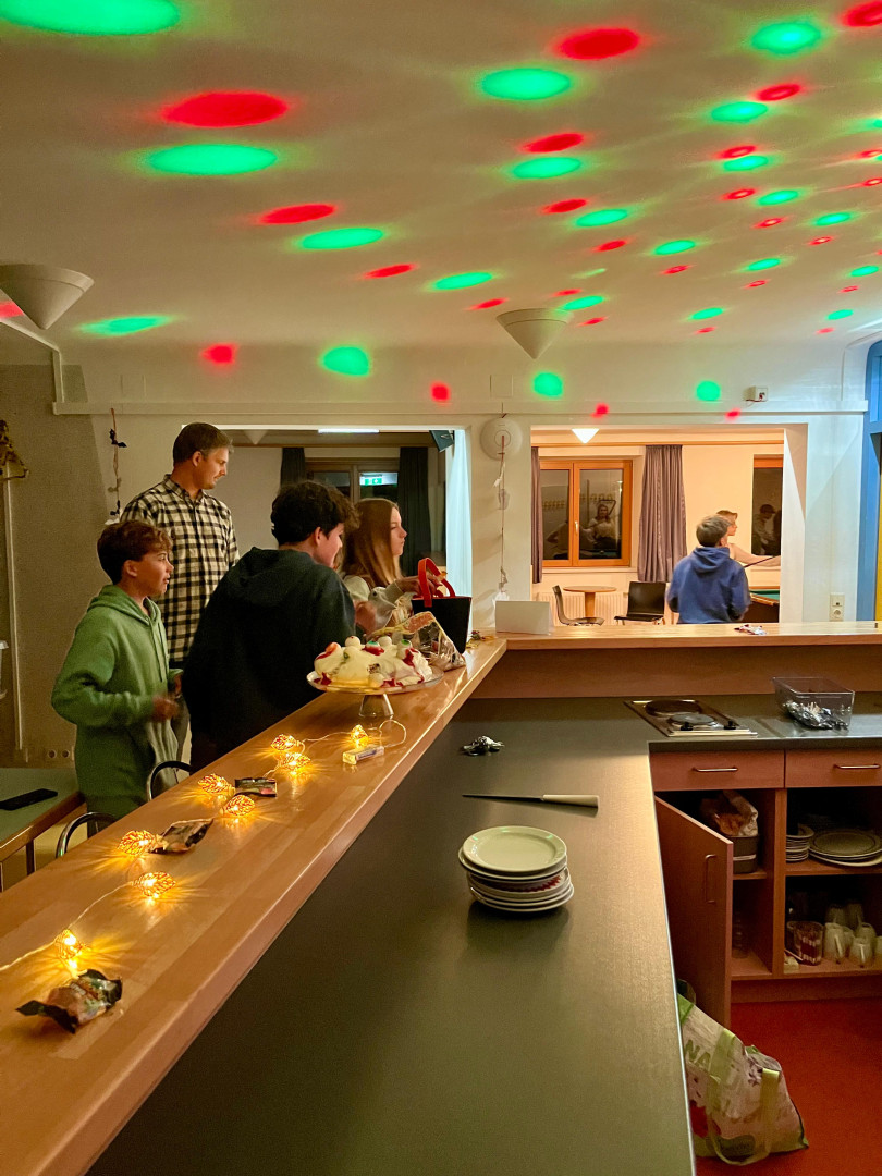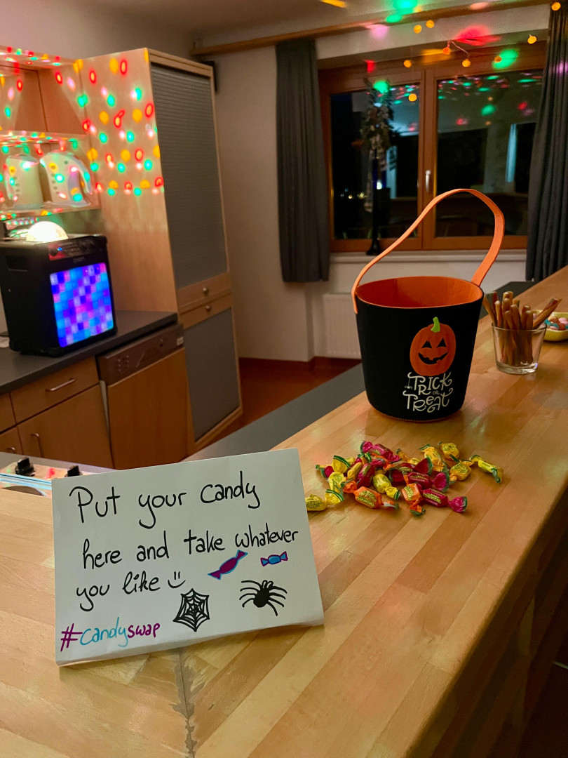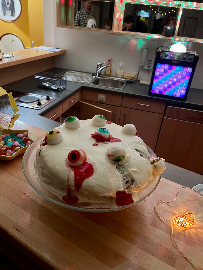 Bunte Lichter sorgten für die richtige Halloween-Stimmung, und der „Augenkuchen“ war nicht nur gruselig anzusehen, sondern auch richtig lecker! Besonders beliebt war der „Candyswap“: hier konnten alle ihre Süßigkeiten abstellen, tauschen und gemeinsam naschen.