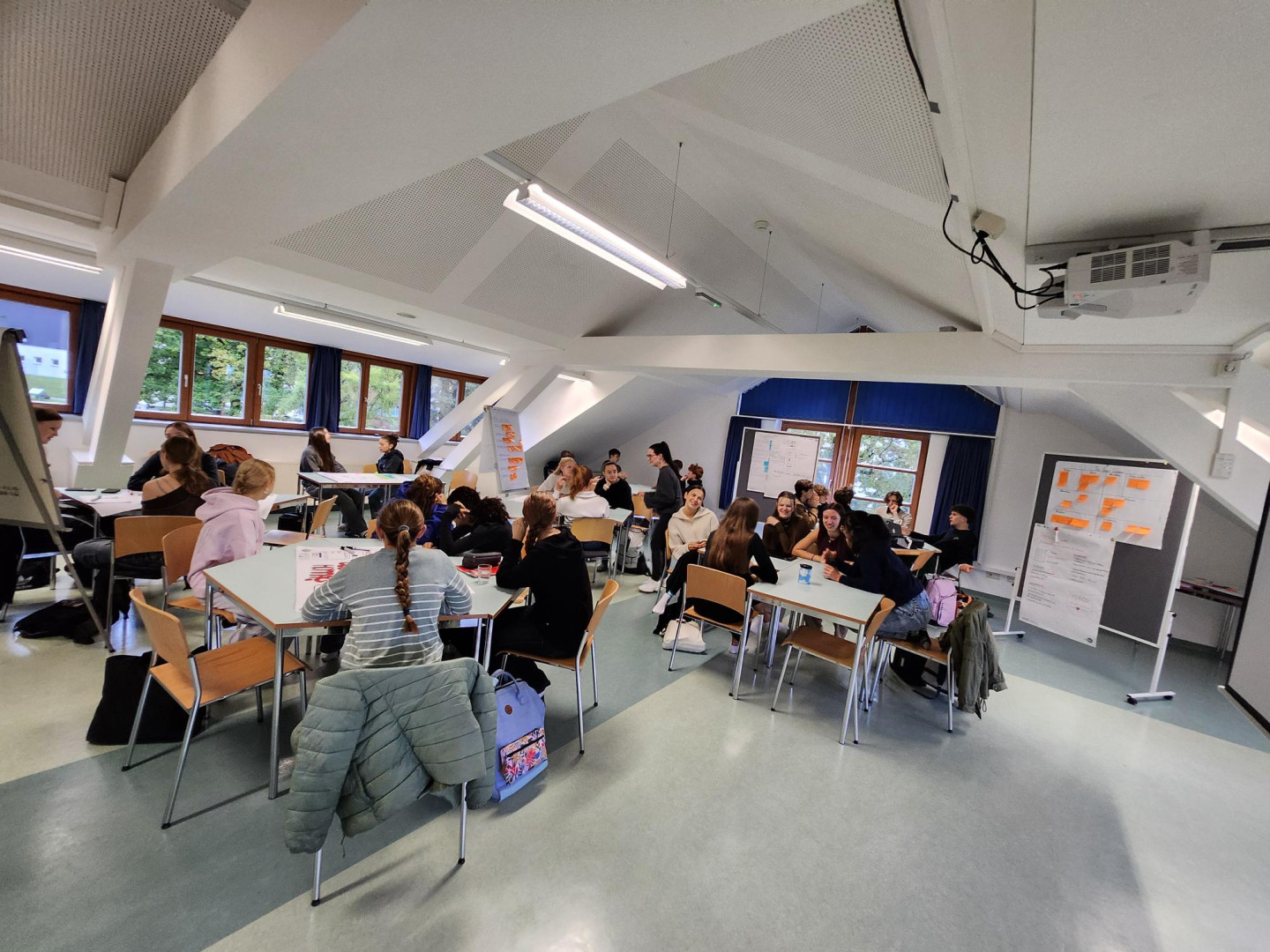 Ein besonderes Highlight war der Besuch dreier regionaler Unternehmer:innen am zweiten Tag, die als Mentor:innen fungierten und den Jugendlichen wertvollen Input aus der Praxis gaben.