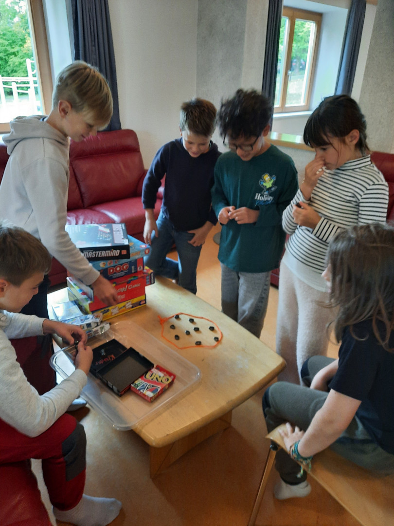 Im Kommunikationszentrum sind nun in einer großen Kiste UNO Flip, Smart Games IQ Puzzles, Ubongo, Dog, Jungle Speed, Aktivity, Dobble, Twister, Cluster, Quirkle, Stille Post extrem und vieles mehr zu finden.
