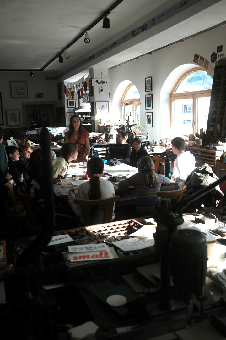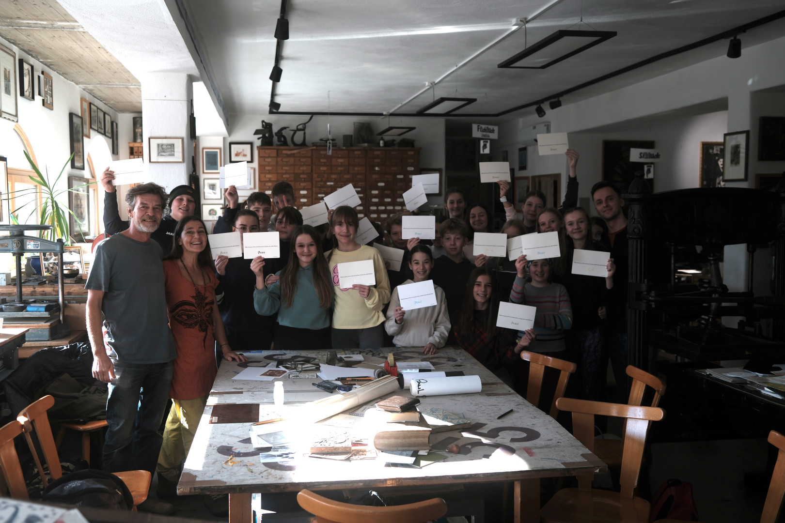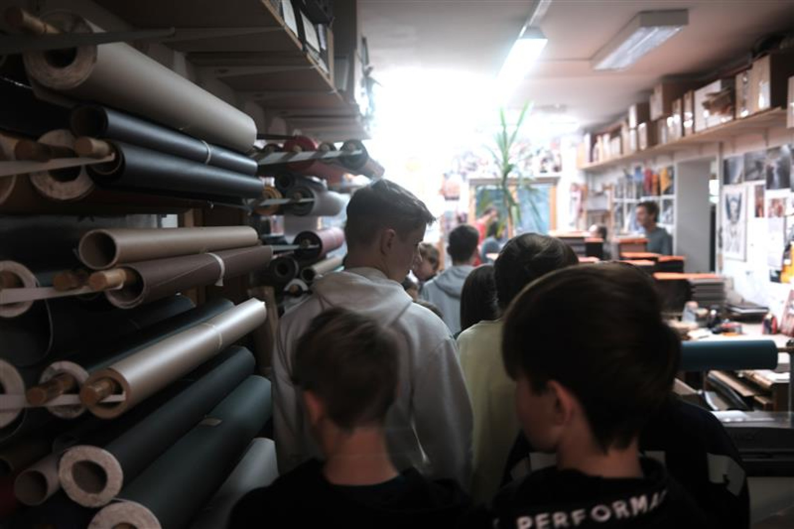 Am Dienstag, den 18. November, besuchte die 3w im Rahmen des Projekts „Kunsthandwerk Buchbinden“ im Unterrichtsfach Kunst und Gestaltung die Buchbinderei Fuchs in Saalfelden. Dabei hatten die Schüler:innen neben einer Führung durch die verschiedenen Werkstätten auch die Möglichkeit, eine Karte selbst zu bedrucken. Diese Exkursion war eine tolle Gelegenheit, über die Erfahrungen des Buchbindens in der Schule hinaus einen lokalen Betrieb kennenzulernen und die vielfältigen handwerklichen Arbeitsprozesse, die in diesem Kunsthandwerk vorkommen, näher zu erleben.
