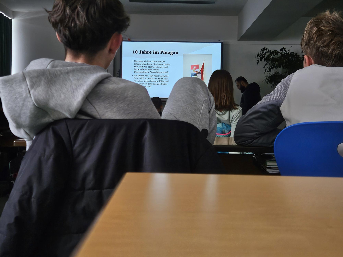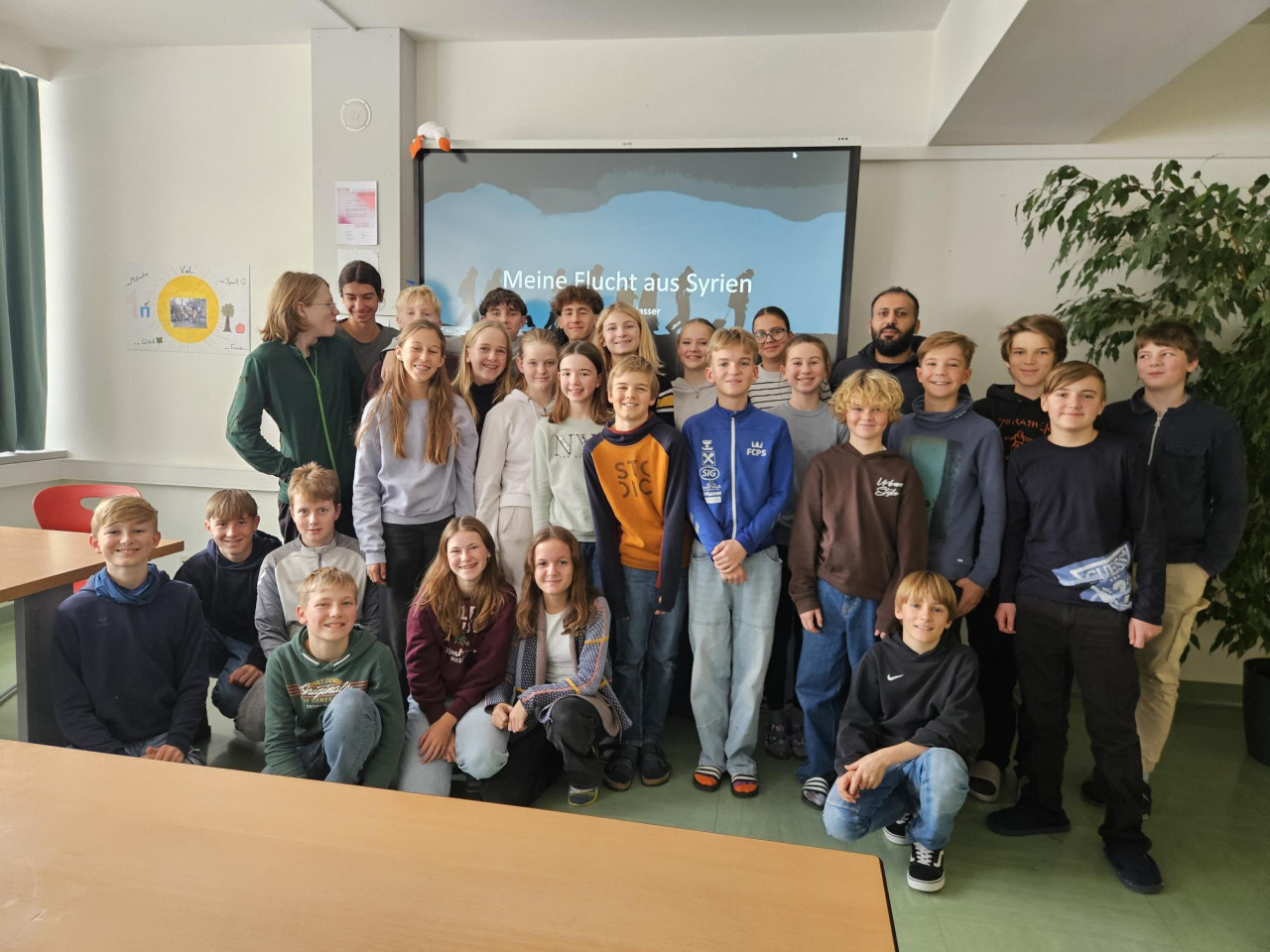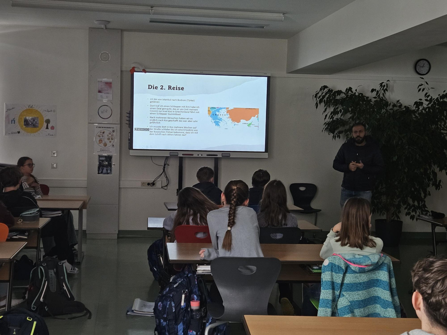 Am Donnerstag, dem 27.11.2025, hatte die 3n Besuch von Amer. Amer musste aufgrund des Krieges aus seiner Heimat flüchten und hat uns mit einer Powerpointpräsentation von seiner Flucht erzählt.