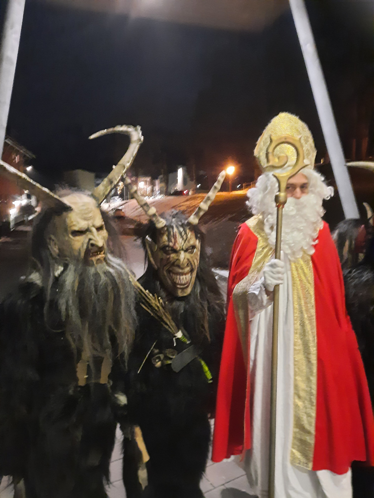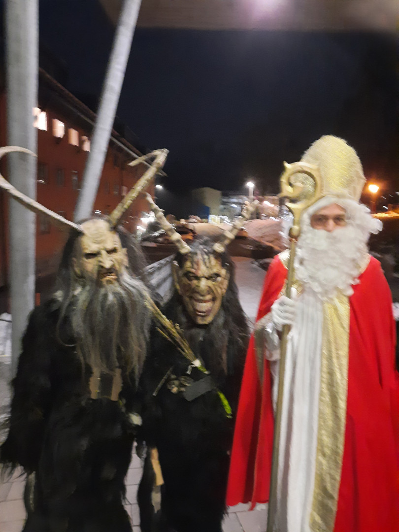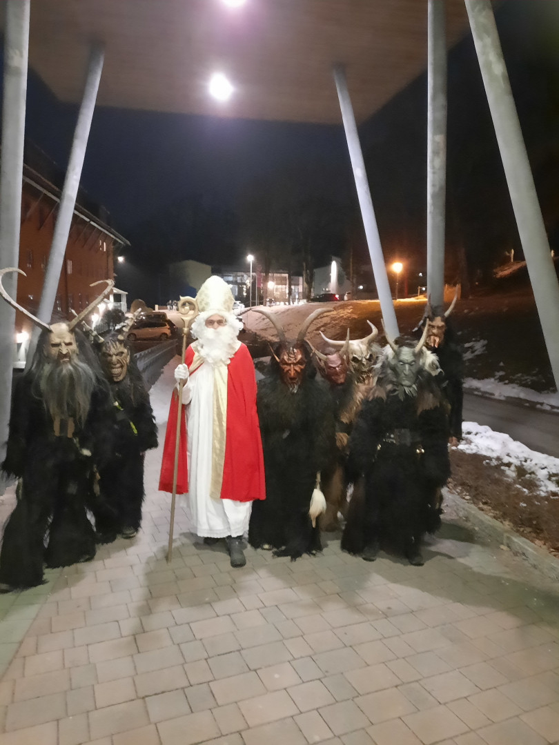 Gestern besuchte der Nikolaus mit sieben teuflischen Gesellen unser Internat, fragte ob denn alle brav gewesen sind und teilte kleine Geschenke aus...