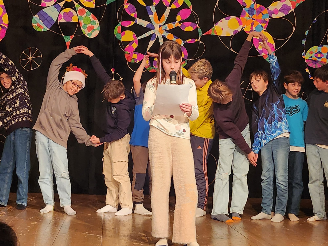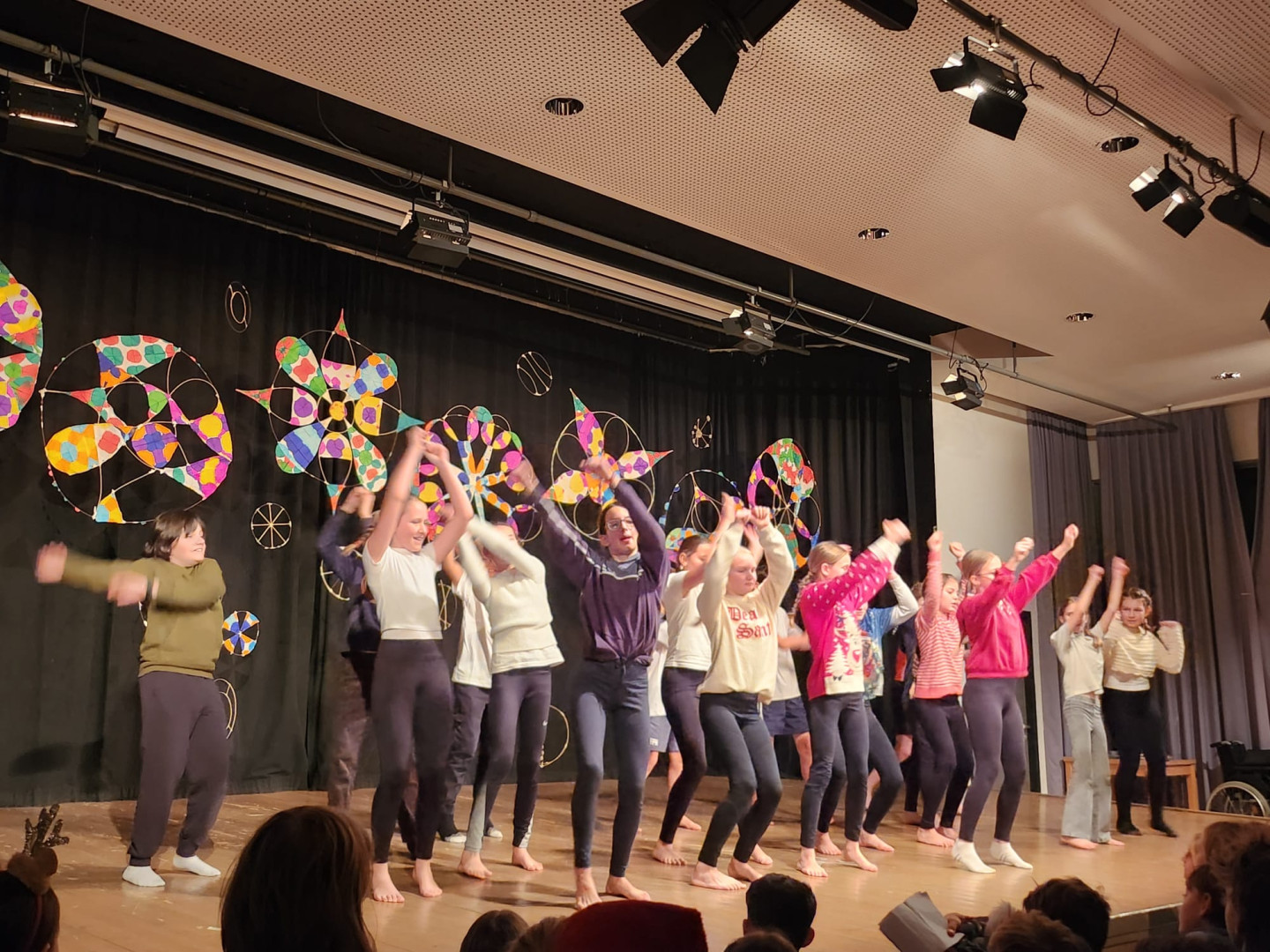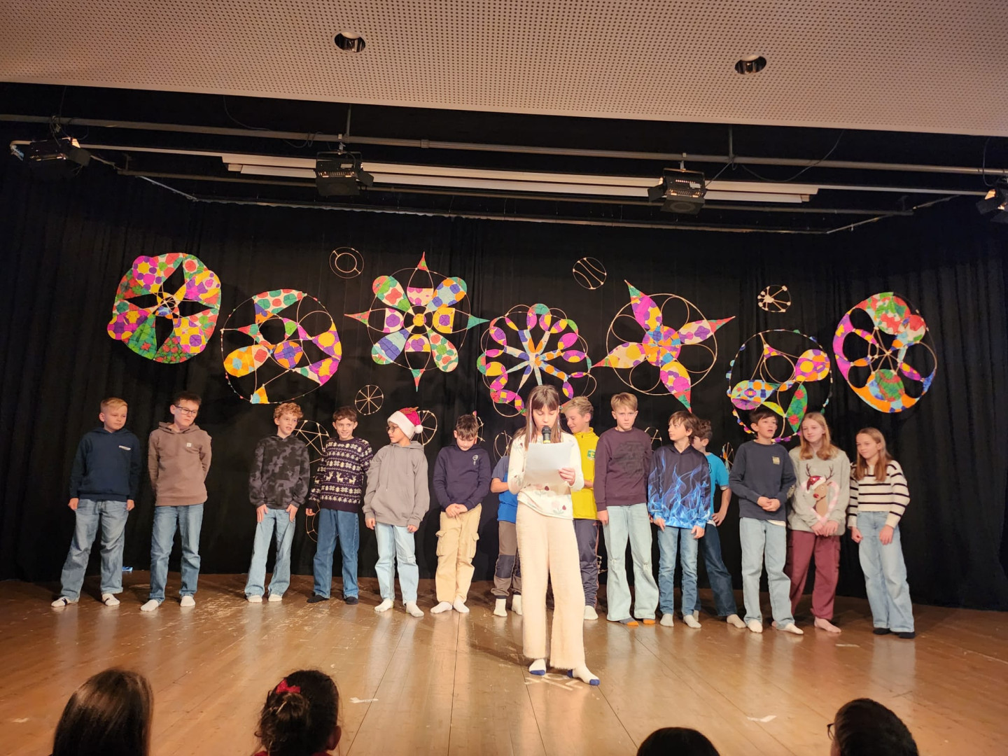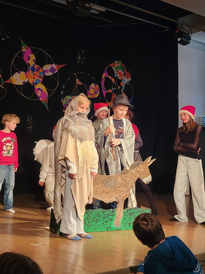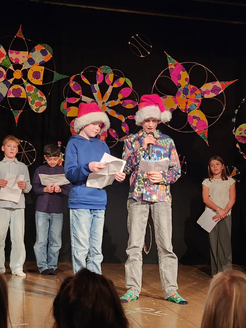 Den Höhepunkt bildeten die Aufführungen am Montag, 22.12.: Zuerst präsentierten die Kinder ihr Programm vor den Zweit- und Drittklässler:innen, am Abend folgte eine weitere Vorstellung für Familien, Freund:innen und Lehrer:innen. Die Vielfalt war groß: Gedichte und Geschichten, Rap, Volks- und Poptänze sowie Lieder aus der ganzen Bandbreite sorgten für eine stimmungsvolle Vorweihnachtszeit.