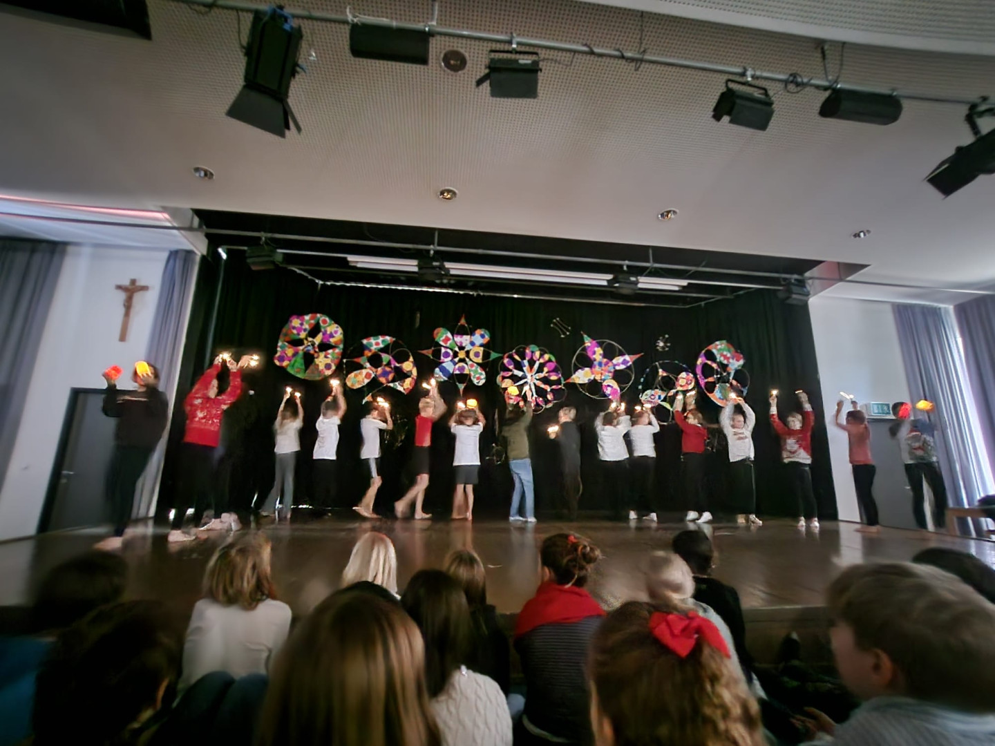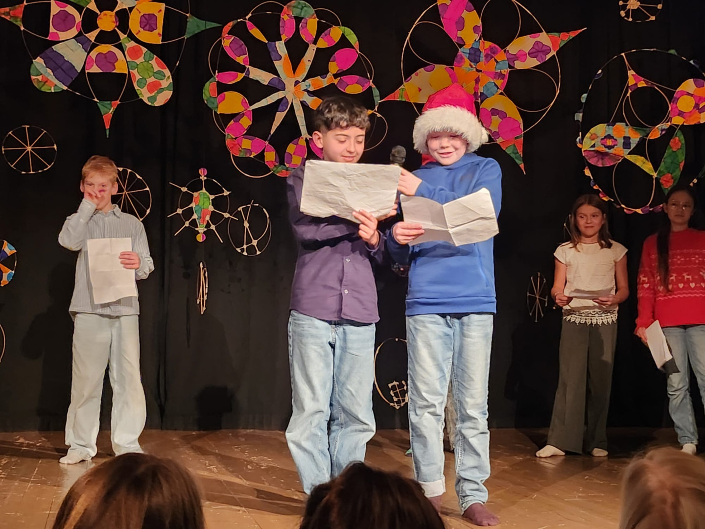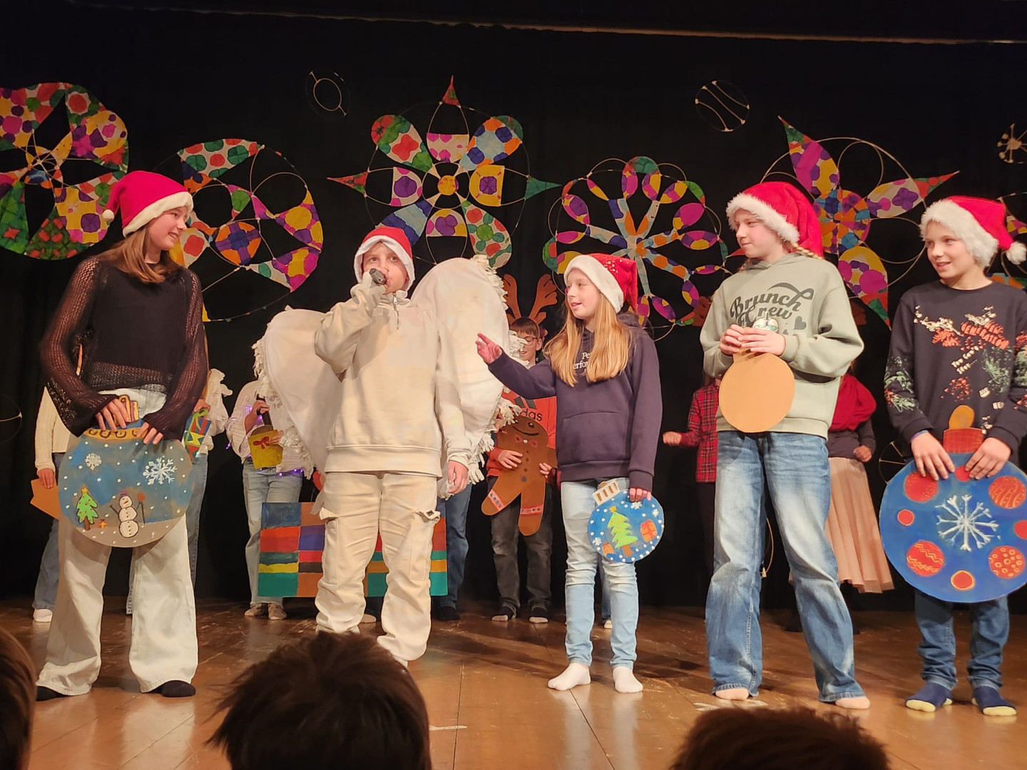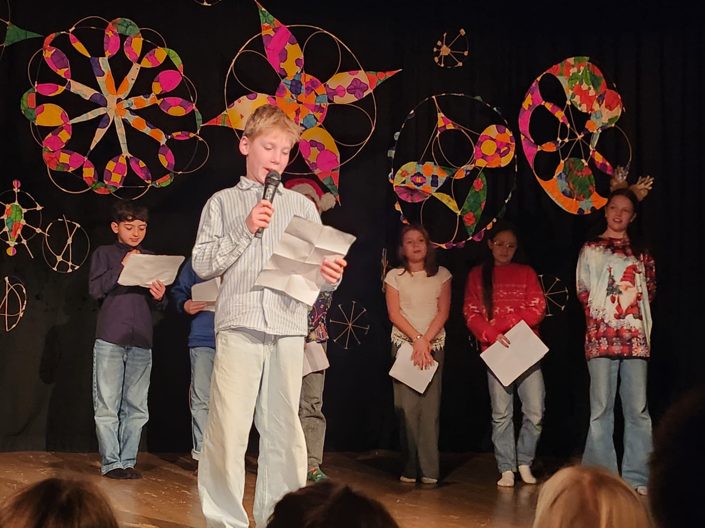 Den Höhepunkt bildeten die Aufführungen am Montag, 22.12.: Zuerst präsentierten die Kinder ihr Programm vor den Zweit- und Drittklässler:innen, am Abend folgte eine weitere Vorstellung für Familien, Freund:innen und Lehrer:innen. Die Vielfalt war groß: Gedichte und Geschichten, Rap, Volks- und Poptänze sowie Lieder aus der ganzen Bandbreite sorgten für eine stimmungsvolle Vorweihnachtszeit.