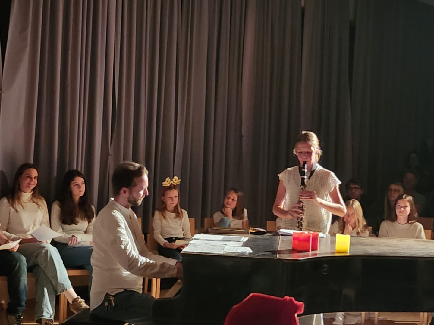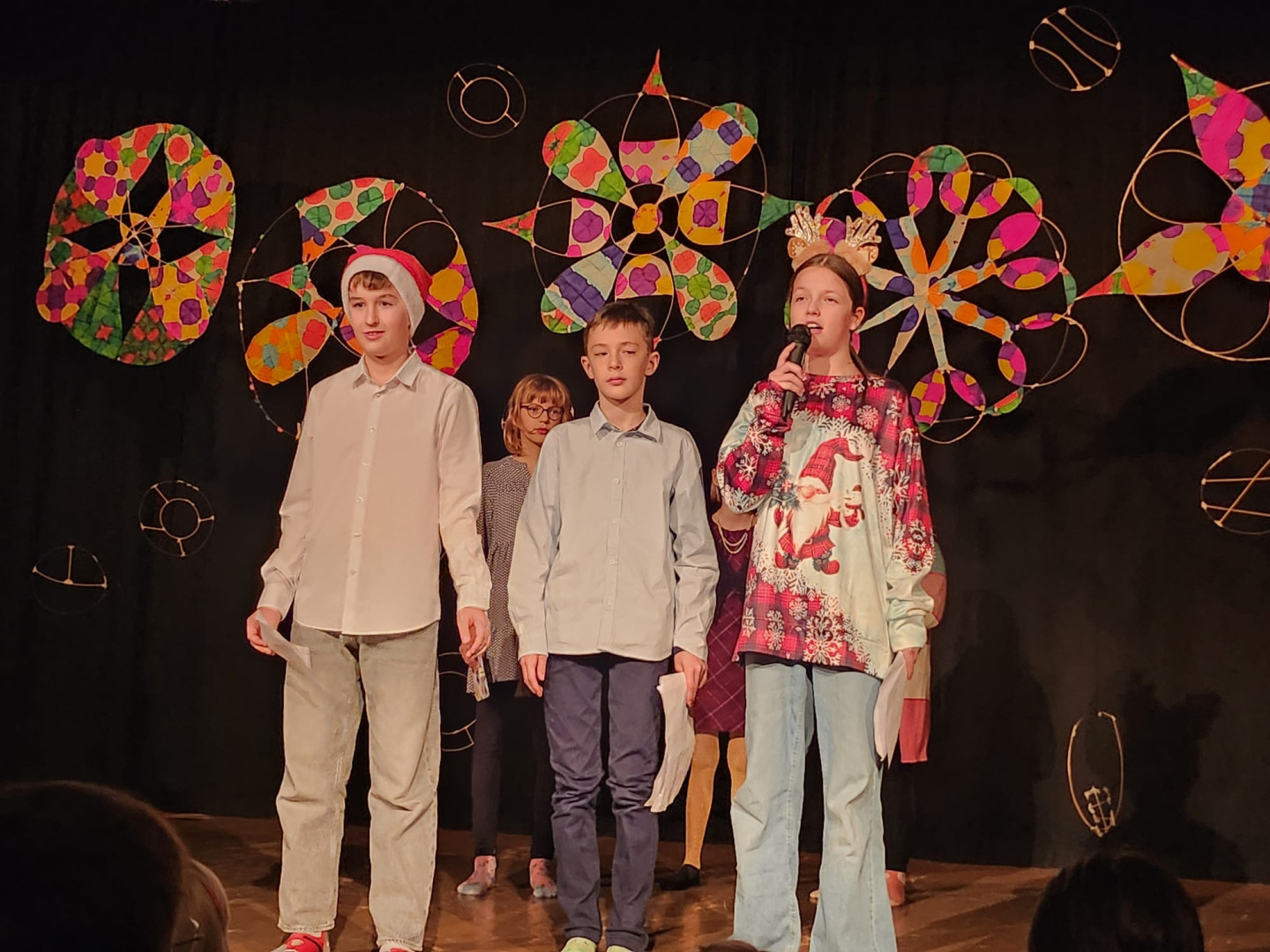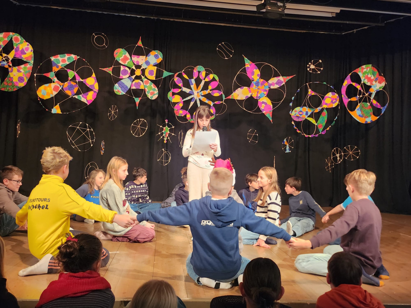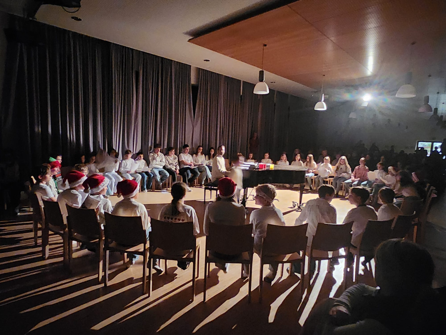 Den Höhepunkt bildeten die Aufführungen am Montag, 22.12.: Zuerst präsentierten die Kinder ihr Programm vor den Zweit- und Drittklässler:innen, am Abend folgte eine weitere Vorstellung für Familien, Freund:innen und Lehrer:innen. Die Vielfalt war groß: Gedichte und Geschichten, Rap, Volks- und Poptänze sowie Lieder aus der ganzen Bandbreite sorgten für eine stimmungsvolle Vorweihnachtszeit.