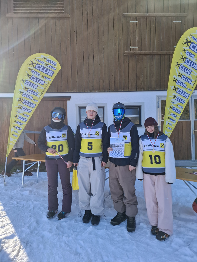 Am 20. Jänner fand in Radstadt bei traumhaften Bedingungen die Boardercross-Landesmeisterschaft der Schulen statt, an der wir mit zwei Oberstufenteams teilnahmen. Viel "QualityTime" und solide Snowboard-Runs ließen den Tag zum Erfolg werden! Unsere Jungs (mit zwei Mädchen) wurden Landesmeister, den Mädchen fehlte weniger als eine Sekunde zum Sieg!