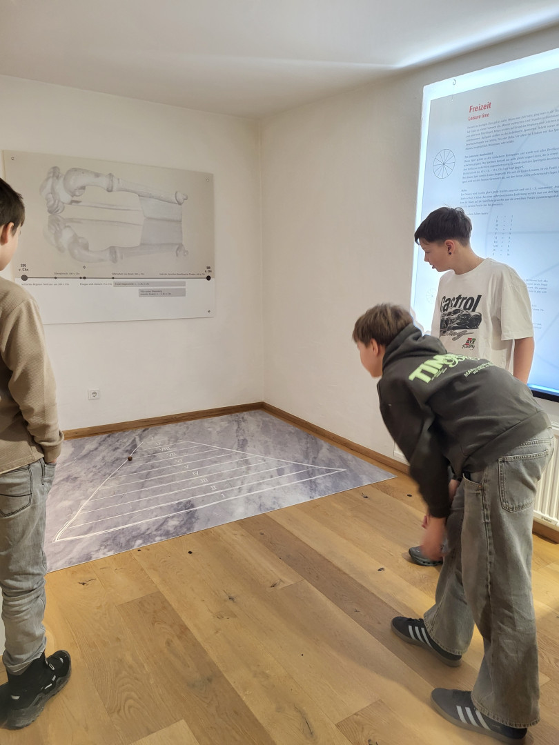 Anschließend probierten wir verschiedene Spiele aus, die bei den jungen Römern beliebt waren, darunter das „Delta-Spiel“ und ein Würfelspiel, das in der Antike mit Tierknochen („Astragal“) gespielt worden ist.