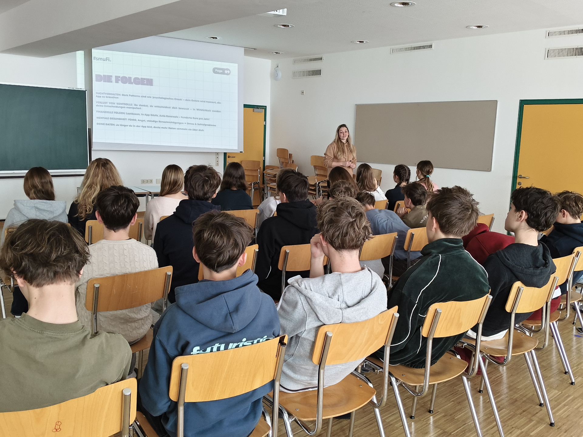 In den letzten Wochen wurden die 5S und 5BNS zu zwei unterschiedlichen Workshops eingeladen. In der 5S Klasse ging es um Algorithmen, Dark Patterns, eine kritische Mediennutzung und Tipps zum sinnvollen Umgang mit dem Handy und Social Media.